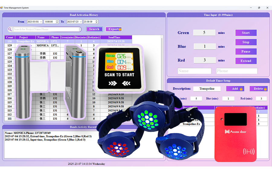 3. Time starts counting until people scan wristbands on turnstile gate or Time starter.