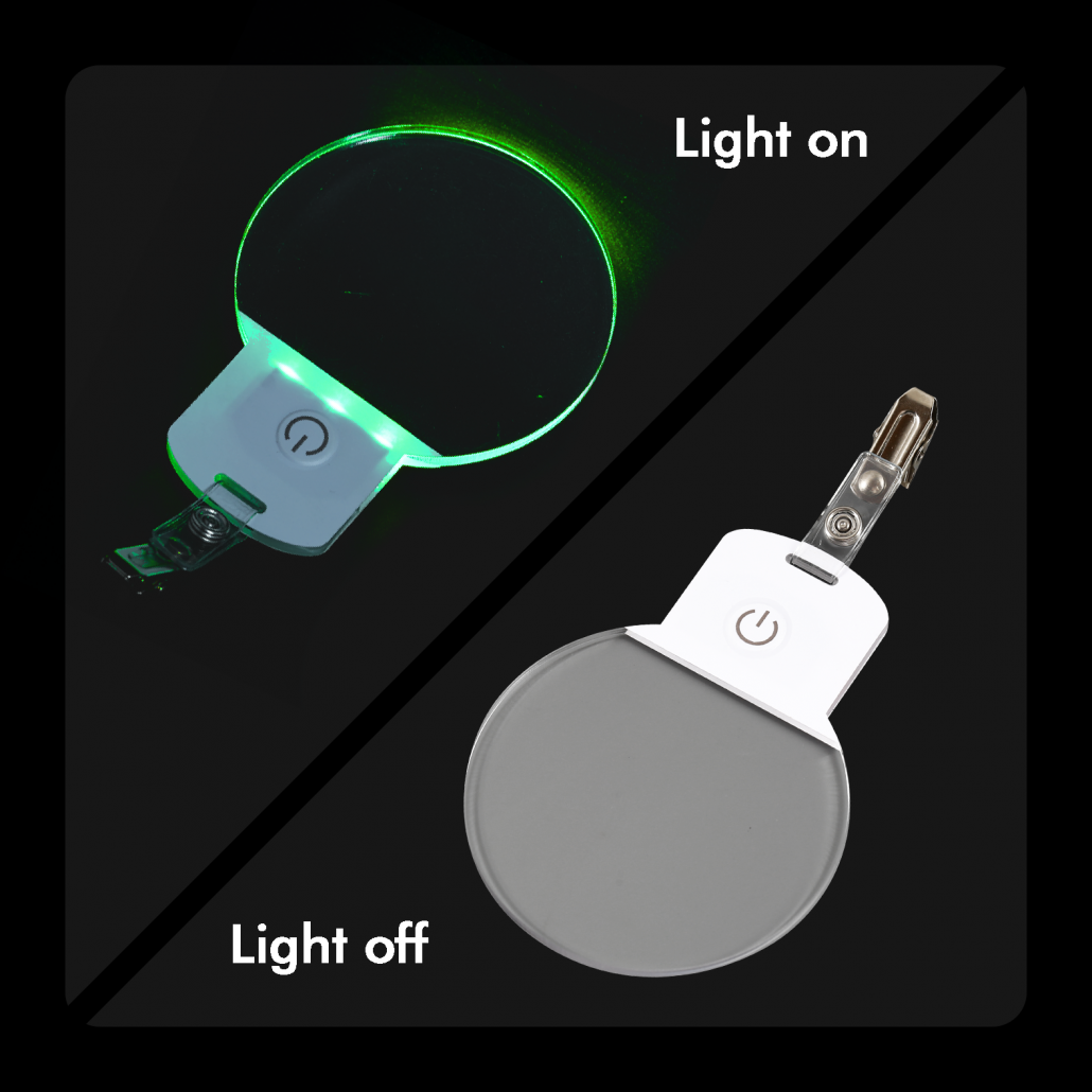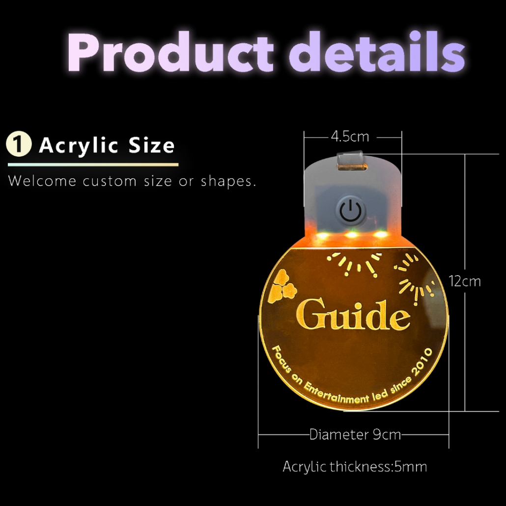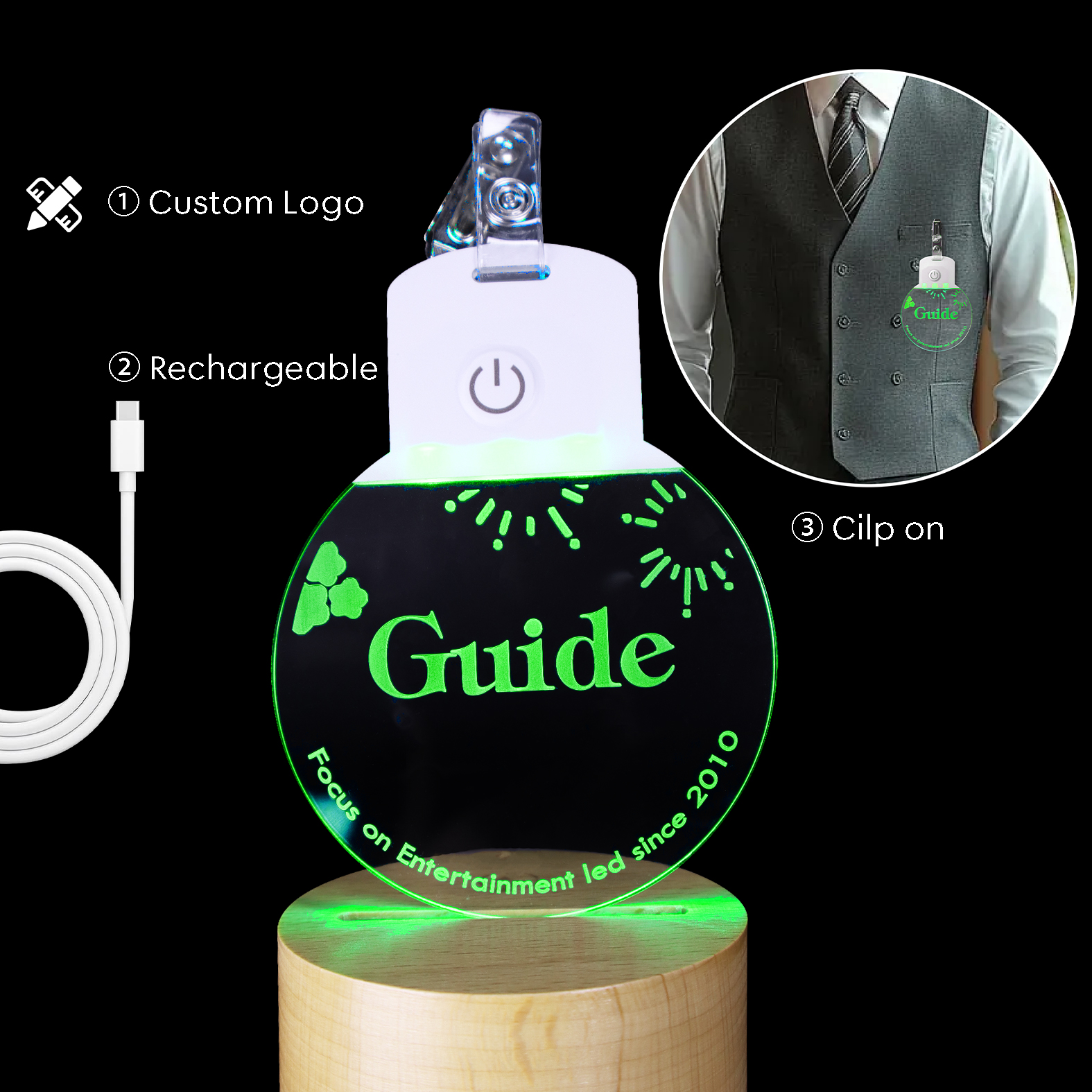 Fashionable glowing acrylic LED name badge! Rechargeable battery, custom laser engrave logo on acrylic, clip on. High transparency, lightweight and durable, accurately presenting every detail, giving the image logo uniqueness and recognition.