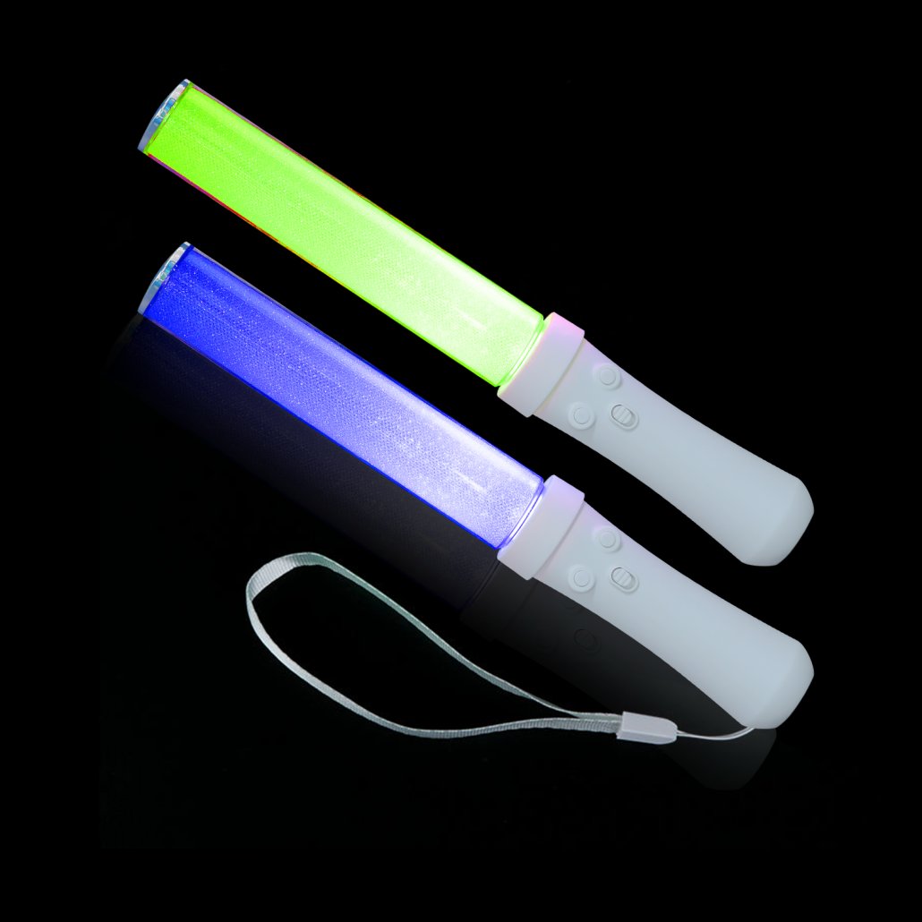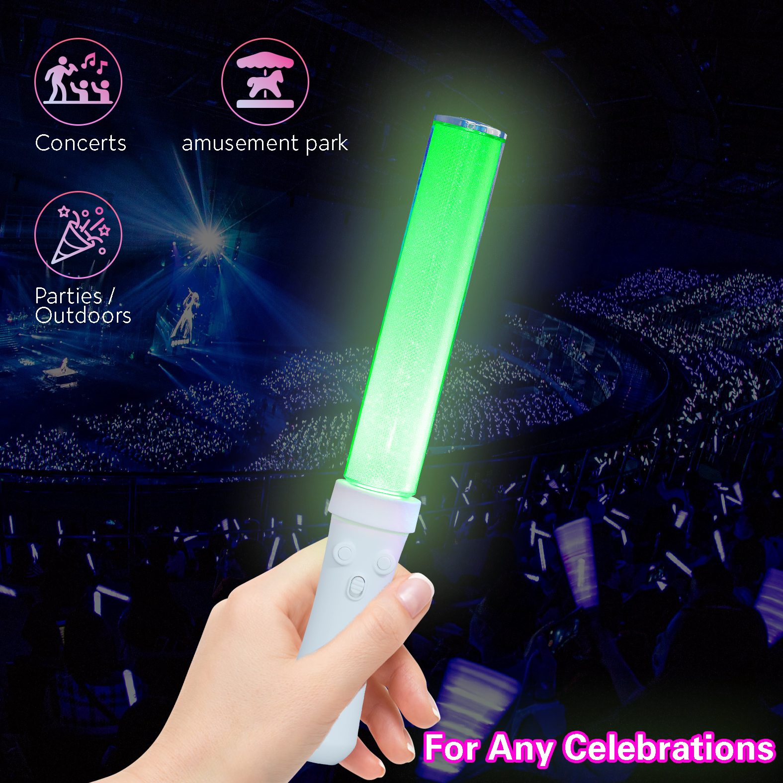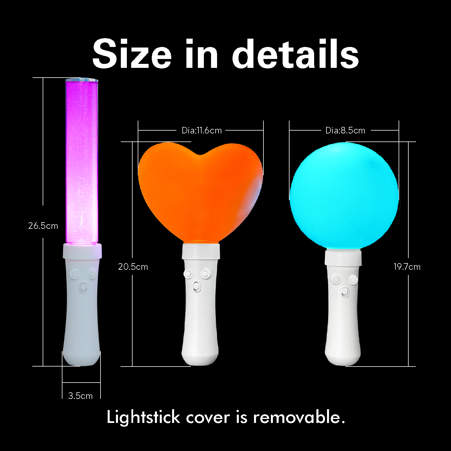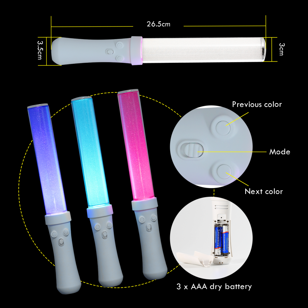 This LED light stick features RGB 15 colors via on off button and is powered by 3*AAA batteries. It has an impressive working time of 8 to 10 hours and is perfect for concerts, weddings, parties, and outdoor activities. We have designs of lightstick star, lightstick heart, all with DMX remote control function and provide lightstick kpop personalize services.