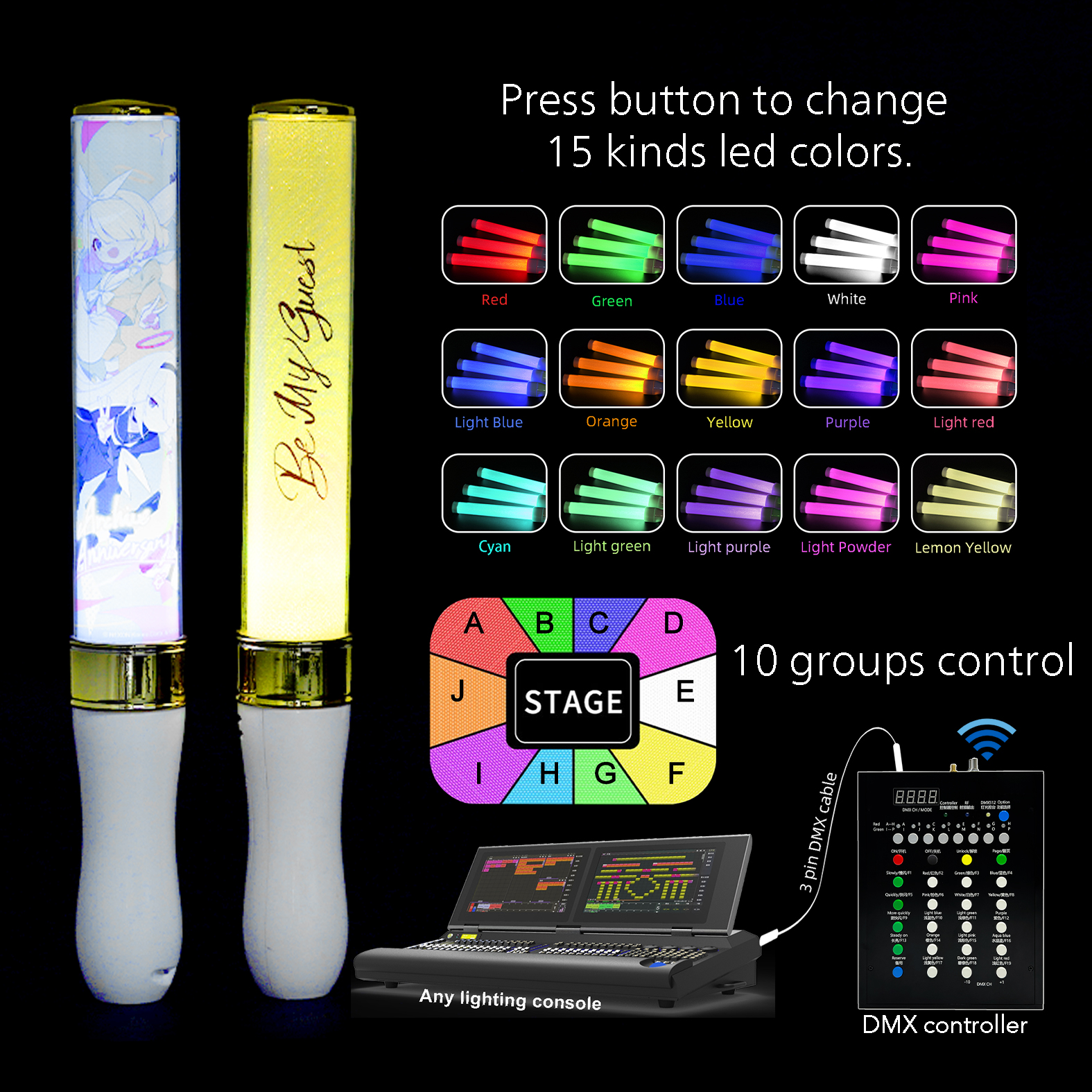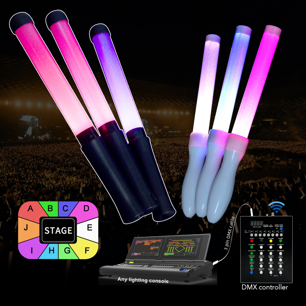 Customize your own glow stick! The glow stick is an important carrier connecting fans and idols. This glow stick features frequency of 433MHz and achieves 10 zone control. Create stunning visual effects for the event.
